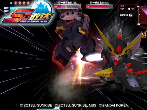 《SD敢达online》12月18日公测战争点燃,引爆你的2009!超级机器人乱斗完全开战,六大特色尽显无限魅力。驾驭你机动战士,与战友并肩作战,突入更广阔的战场。劲爆机器人格斗射击,快感百分百满点。《SD敢达online》12月18日全军突击,等待你加入这道钢铁洪流!